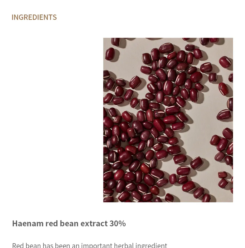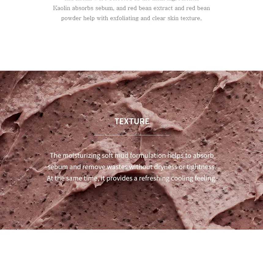 - Red Bean Extract and Red Bean Powder help exfoliate for clear, smooth skin texture.